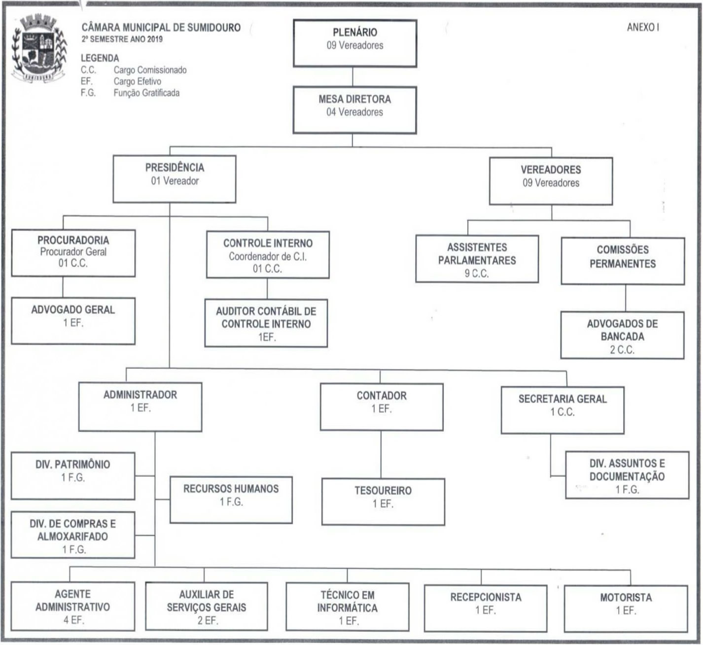 DISPÕE SOBRE A ALTERAÇÃO DO ORGANOGRAMA, DA EXTIÇÃO DE CARGOS COMISSIONADOS, EFETIVOS E FUNÇÕES GRATIFICADAS E CRIAÇÃO DE CARGOS EFETIVOS E FUNÇÕES GRATIFICADAS NA CÂMARA MUNICIPAL DE SUMIDOURO E DÁ OUTRAS PROVIDÊNCIAS